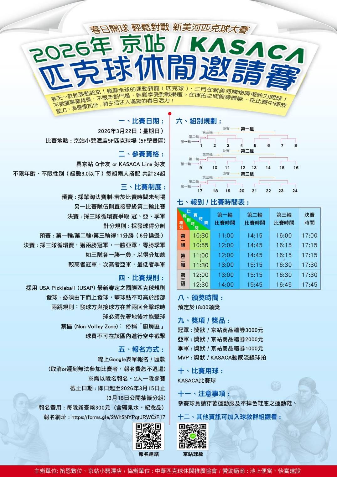 活動名稱: 2026年 京站 / KASACA 匹克球休閒邀請賽
